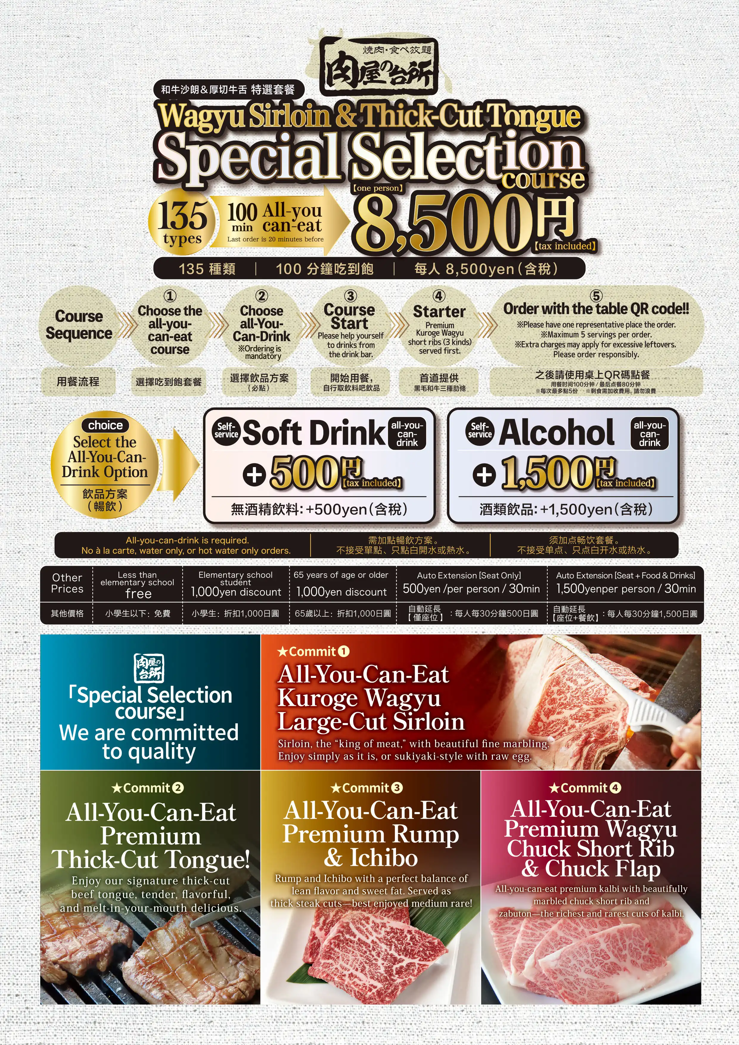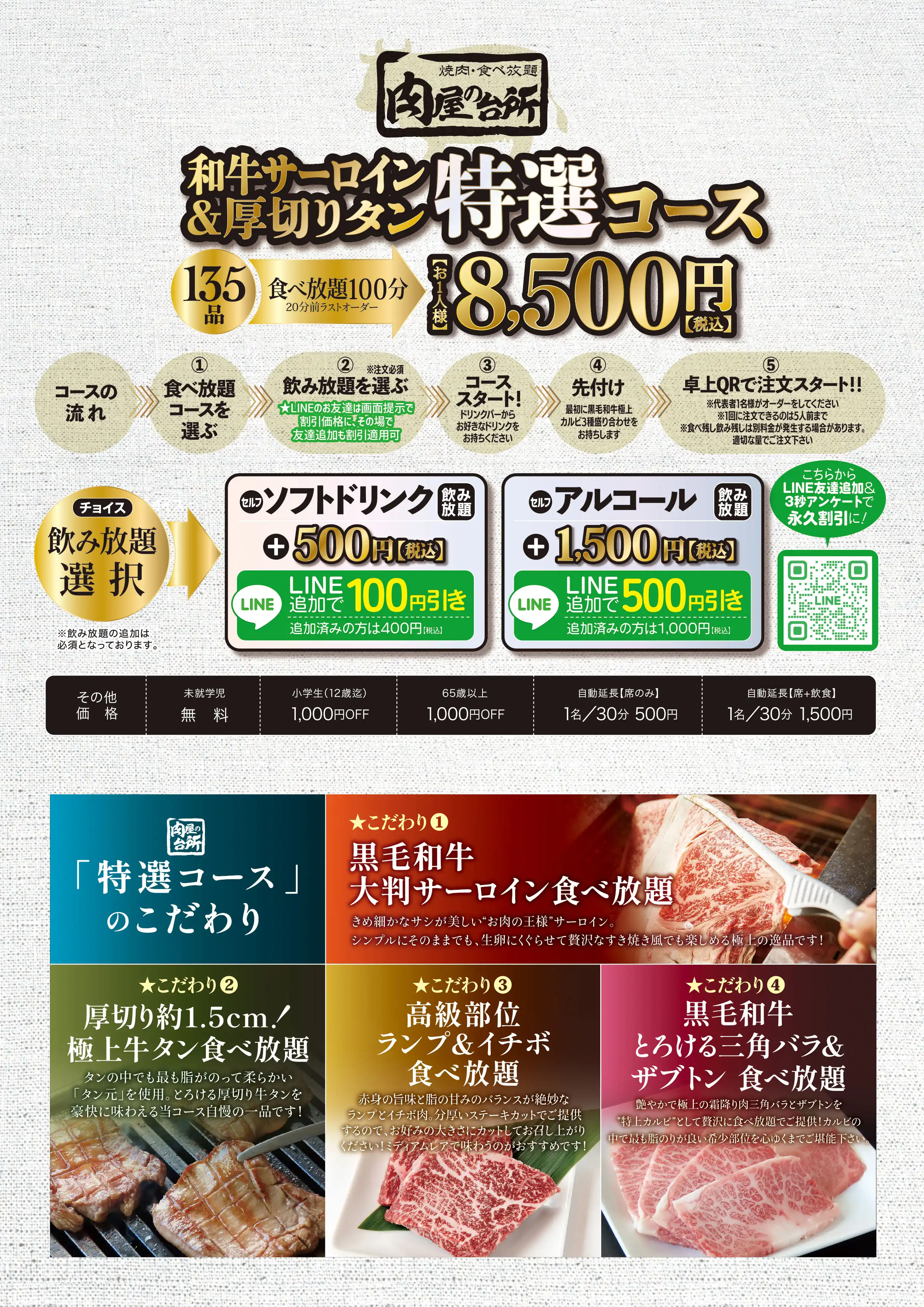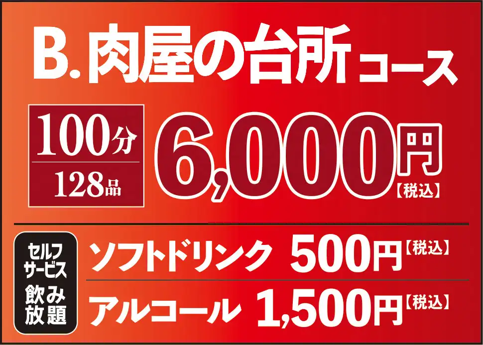 心ゆくまで上質な焼肉食べ放題をお召し上がりください。